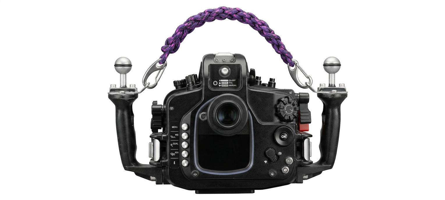 Asa supersegura de agarre para llevar le equipo cómodamente. Los mosquetones rápidos inoxidables se pueden enganchar en las bolas de las asas o en las anillas correspondientes si tu carcasa las tiene. Son muy rápidas de quitar y poner, lo que facilita usarlas para que te pasen el equipo al entrar al agua y que te lo recojan al acabar la inmersión, pero durante la inmersión la puedes enganchar en cualquier anilla del chaleco fácilmente.