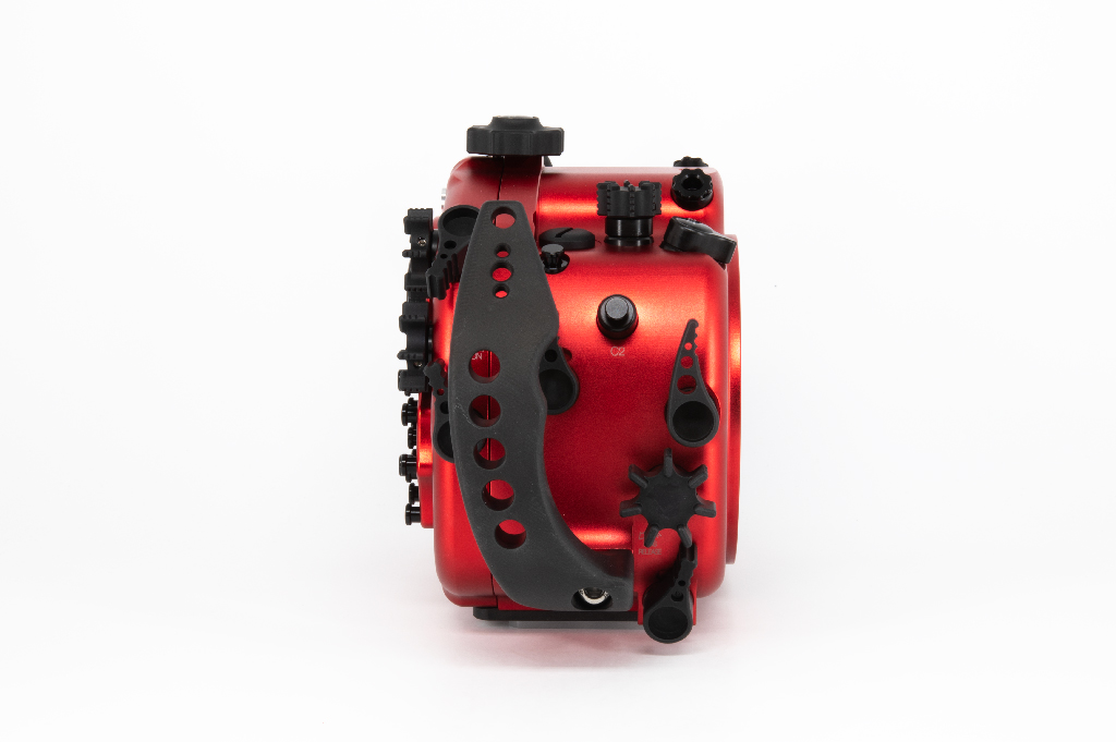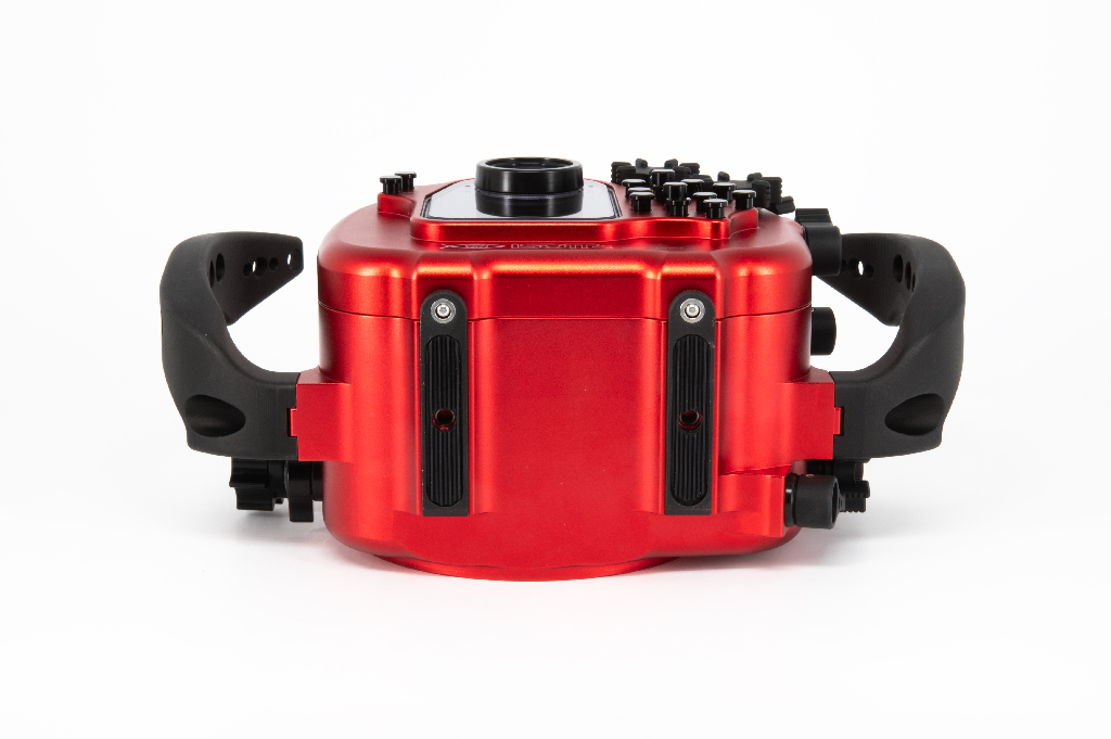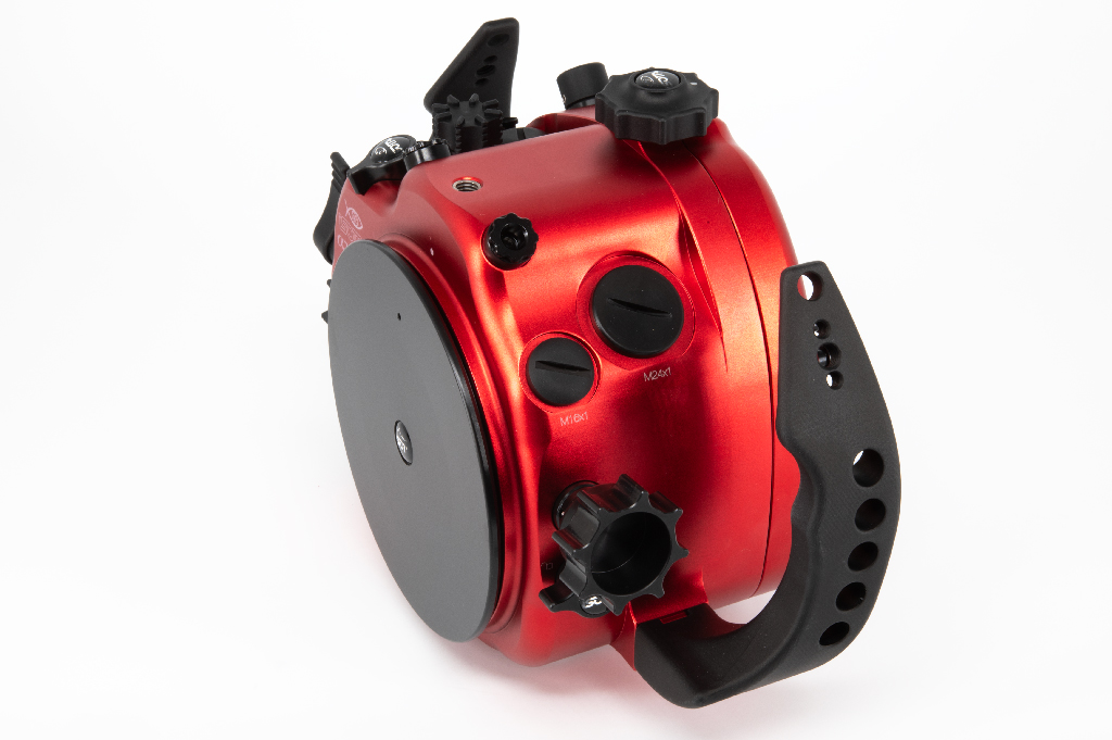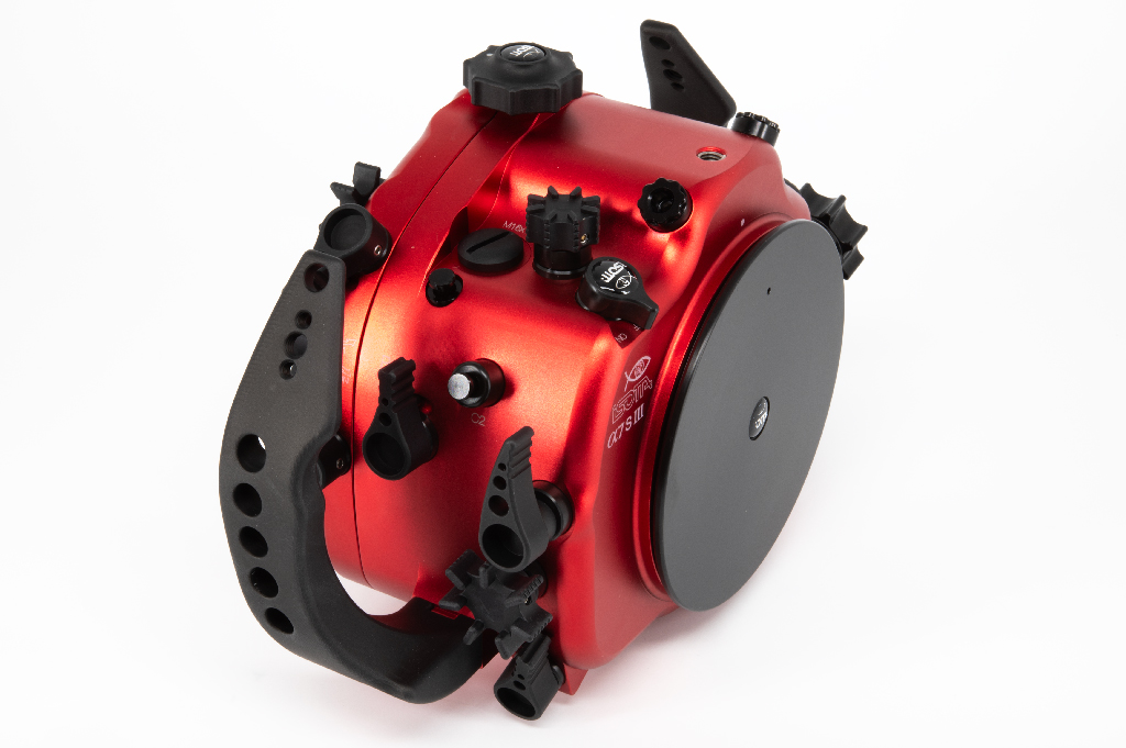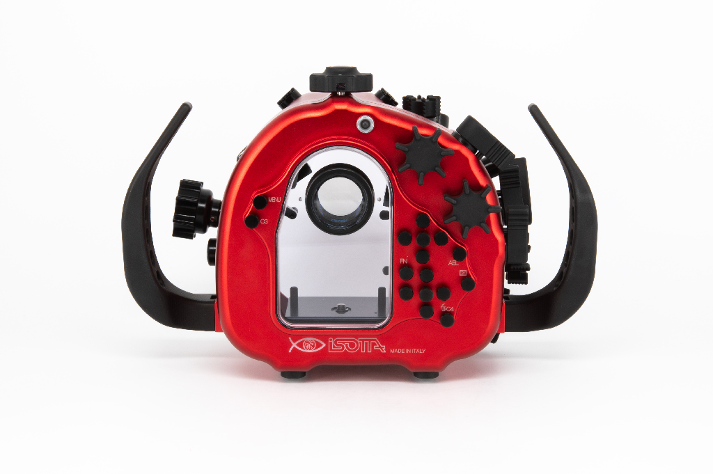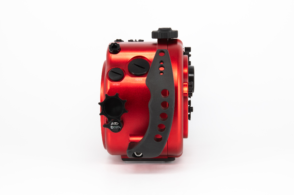 Carcasa submarina profesional de Isotta diseñada específicamente para la cámara Sony Alpha 7S III. Fabricada en aluminio anodizado de alta calidad en color rojo, esta carcasa garantiza durabilidad y resistencia en condiciones extremas. Cuenta con doble junta tórica en todos los botones y piezas móviles para asegurar la estanqueidad hasta los 100 metros de profundidad. Incluye un sensor de humedad con indicador LED reemplazable, mandos ergonómicos de aluminio con símbolos grabados idénticos a los de la cámara y un sistema de cierre con una sola mano. La carcasa ofrece múltiples opciones de expansión mediante tres orificios M16 y uno M24 para sistemas de vacío, monitores externos o conectores tipo Nikonos/S6. Dimensiones: 282mm x 186mm x 127mm.