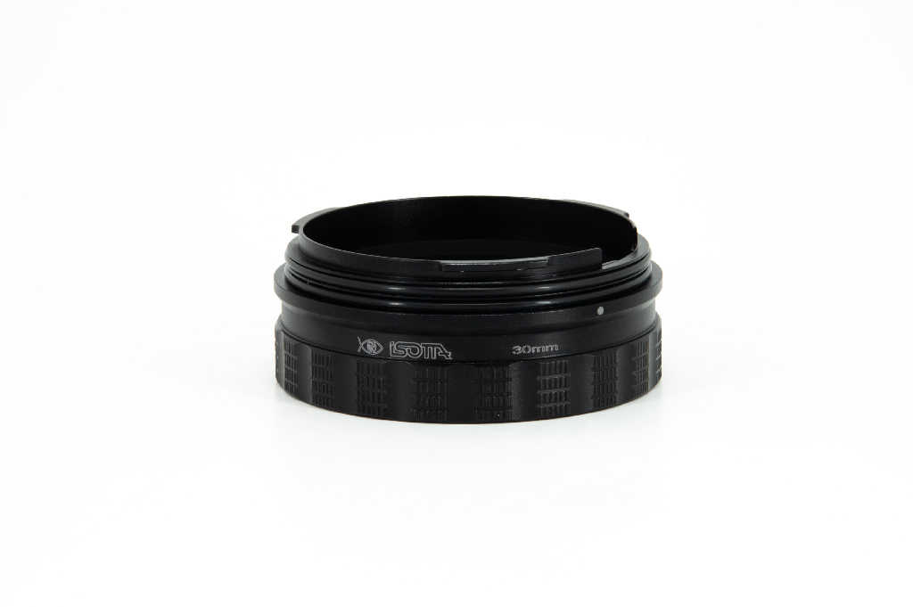 El anillo de extensión de 30 mm permite aumentar la longitud efectiva en 30 mm en una configuración de puerto B102. Es fundamental consultar la tabla de puertos para determinar el tamaño de anillo óptimo para su objetivo. Especificaciones técnicas: cuerpo fabricado en aluminio anticorodal anodizado negro, material de la cúpula en cristal óptico de alta calidad o policarbonato, parasol extraíble, sellado mediante doble junta tórica (O-Ring) y conexión de bayoneta B102. El paquete incluye el anillo de extensión, parasol, protección frontal de neopreno, tapa trasera de PVC y 2 juntas tóricas de repuesto.