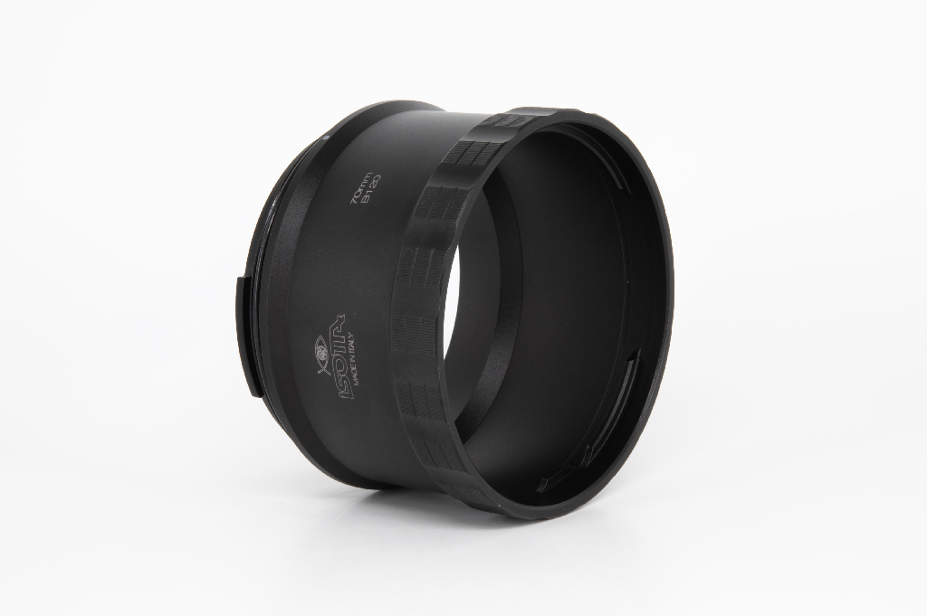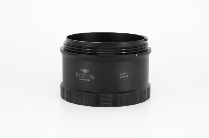El anillo de extensión de 70 mm permite aumentar la longitud efectiva en 70 mm en una configuración de puerto B120. Es un elemento esencial para asegurar una configuración óptima de los objetivos de su cámara, adaptando la distancia entre la lente y el frontal para garantizar un rendimiento óptimo e imágenes nítidas. BENEFICIOS: Optimiza la distancia focal evitando el viñeteado y la distorsión, permite adaptar diferentes lentes según sus requisitos específicos y mejora la ergonomía bajo el agua. DATOS TÉCNICOS: Fabricado en aluminio anticorodal anodizado. Fijación a la carcasa mediante bayoneta ISOTTA B120. Profundidad máxima de trabajo de 100 metros. EL PAQUETE INCLUYE: Anillo de extensión de 70 mm y dos juntas tóricas (O-ring) de sellado.