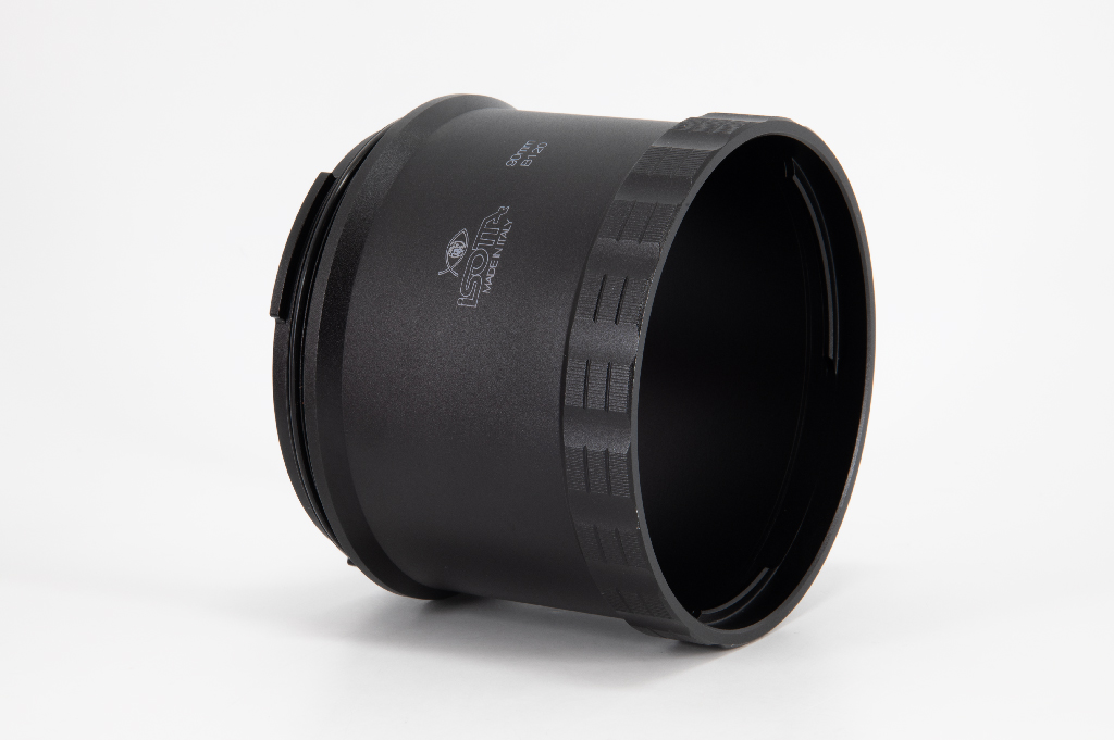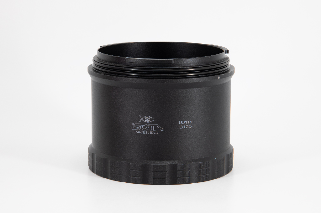El anillo de extensión de 90 mm permite aumentar la longitud efectiva en 90 mm en una configuración de frontal (porthole) B120. Estos anillos son elementos esenciales para asegurar un montaje óptimo de los objetivos de la cámara, permitiendo adaptar la distancia entre el objetivo y el frontal para garantizar un rendimiento óptimo e imágenes nítidas. Beneficios: Optimiza la distancia focal, evita el viñeteado y la distorsión, y permite utilizar una amplia gama de lentes. Especificaciones técnicas: Fabricado en aluminio anticorodal anodizado; sistema de fijación mediante bayoneta ISOTTA B120; profundidad máxima de trabajo de 100 metros. El paquete incluye el anillo de extensión del tamaño seleccionado y dos juntas tóricas (O-rings).
