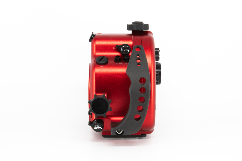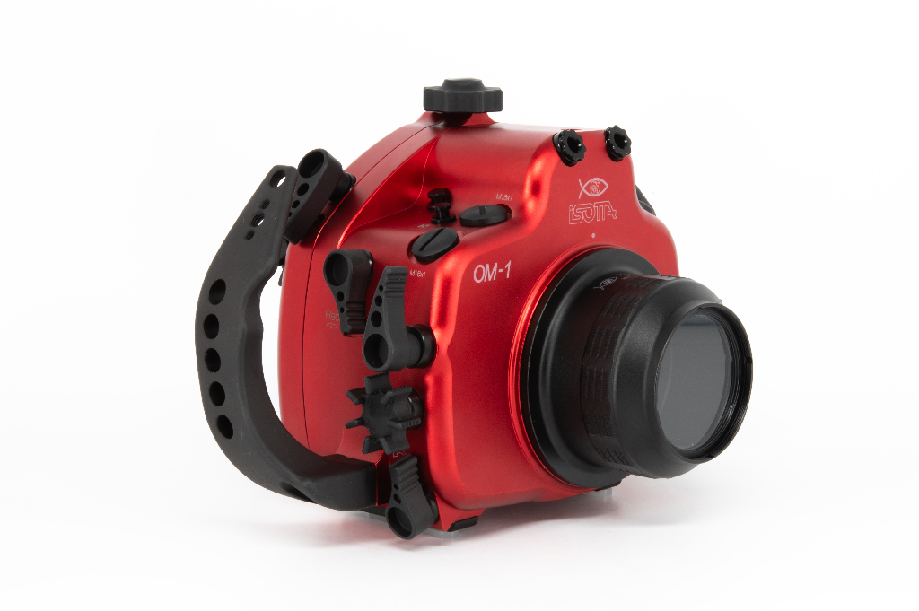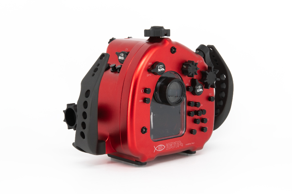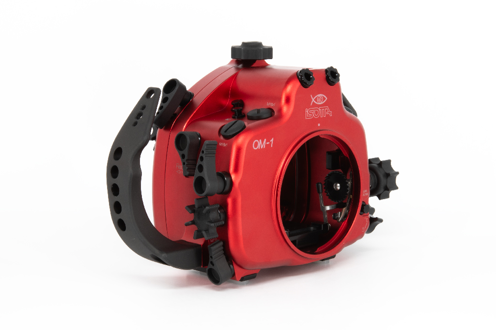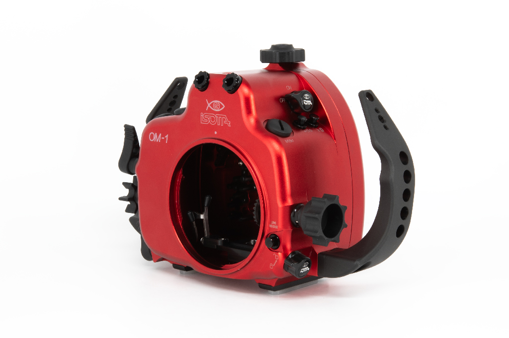 Carcasa estanca profesional de Isotta diseñada específicamente para la cámara OM System OM-1. Fabricada en aluminio anodizado de alta resistencia en color rojo, ofrece un diseño ergonómico y acceso a todos los mandos de la cámara. Cuenta con un sistema de cierre con una sola mano, doble junta tórica en cada control para máxima seguridad y un sensor de humedad integrado. Es sumergible hasta 100 metros de profundidad. Las especificaciones técnicas incluyen: cuerpo de aluminio anodizado, empuñaduras laterales ergonómicas, dos conexiones de fibra óptica, tres orificios M16 para accesorios (como sistemas de vacío o monitores), visor estándar Isotta y una placa de montaje de cámara de fácil inserción. Peso: 2.500 gr. Dimensiones: 180mm x 110mm x 190mm. El paquete incluye la carcasa, tapa frontal, sensor de humedad, kit de juntas tóricas de repuesto y lubricante de silicona.