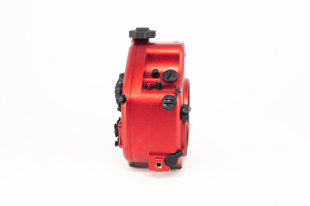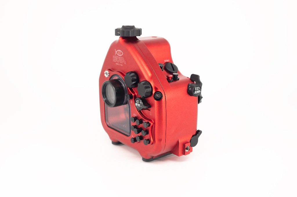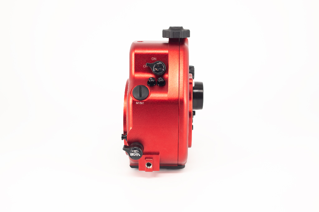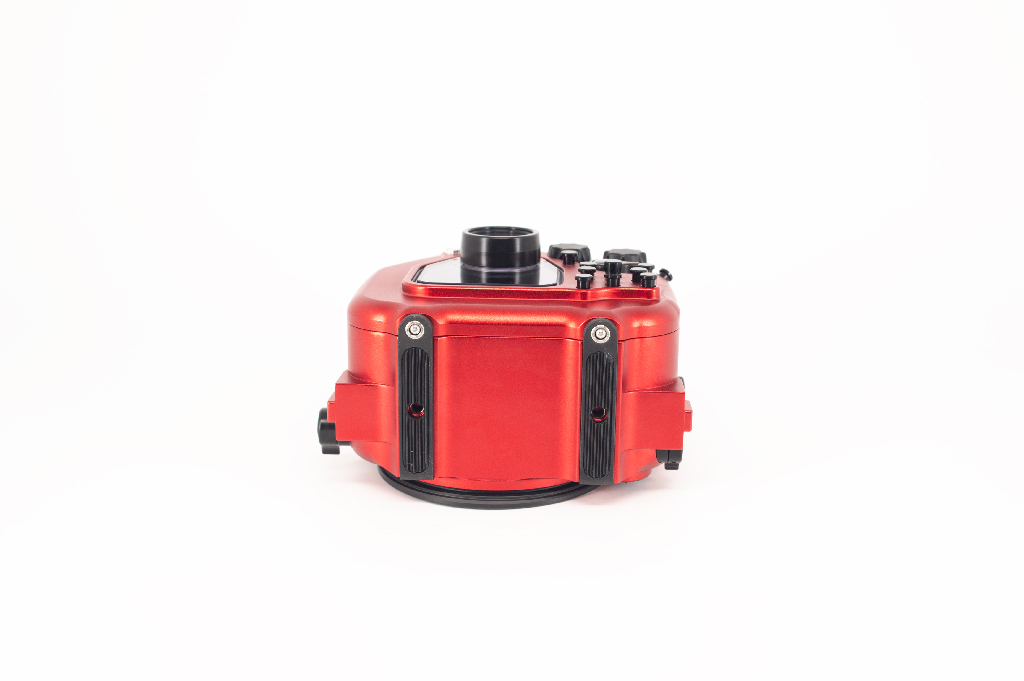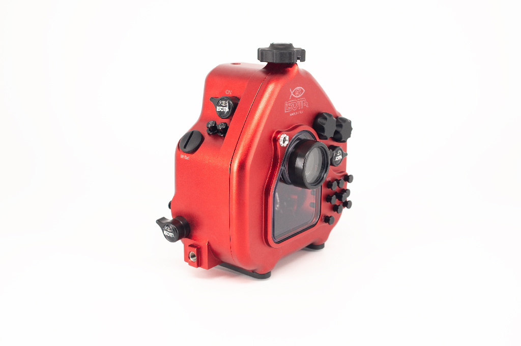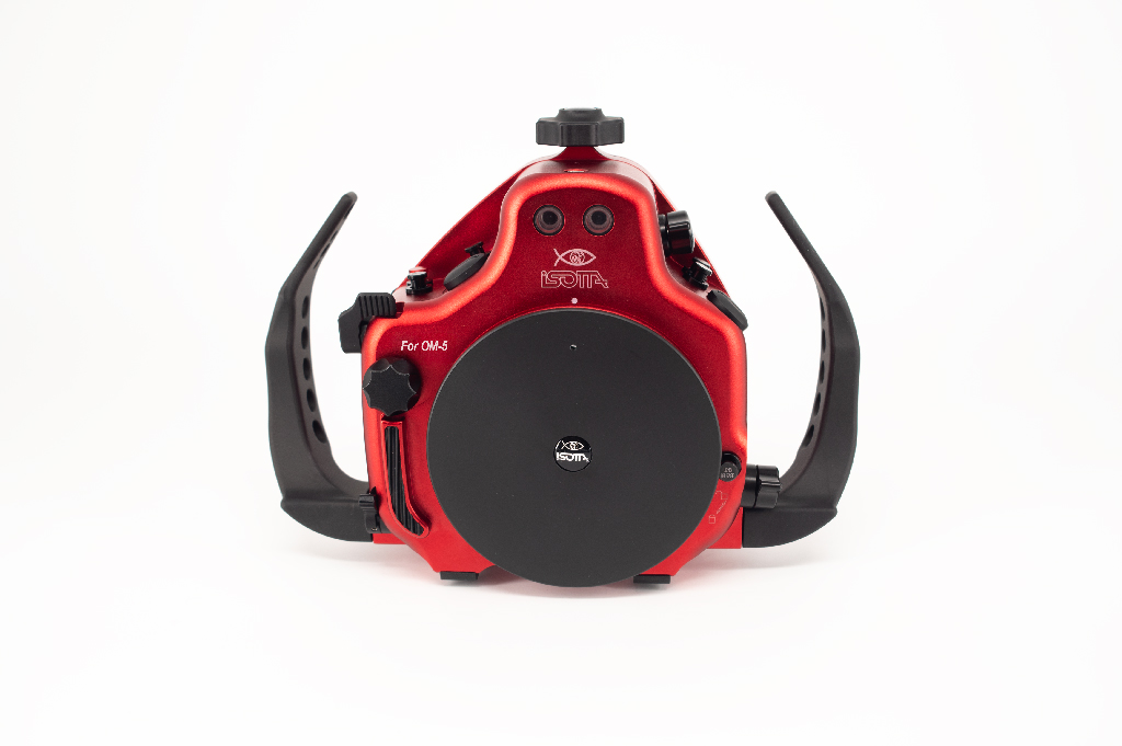 Carcasa submarina profesional de Isotta diseñada específicamente para la cámara OM System OM-5. Fabricada en aluminio anodizado de alta calidad en color rojo distintivo, ofrece una resistencia excepcional y durabilidad bajo el agua hasta una profundidad de 100 metros. Cuenta con un diseño ergonómico con botones y diales de aluminio que replican los controles de la cámara con símbolos grabados. Incluye un sistema de cierre de seguridad con una sola mano, doble junta tórica en todas las partes móviles, sensor de humedad con indicador LED y montura de bayoneta B102 para puertos. Las especificaciones técnicas incluyen dimensiones de 178mm x 189mm x 106mm y conexiones de fibra óptica de serie. Nota: Las empuñaduras laterales no están incluidas.