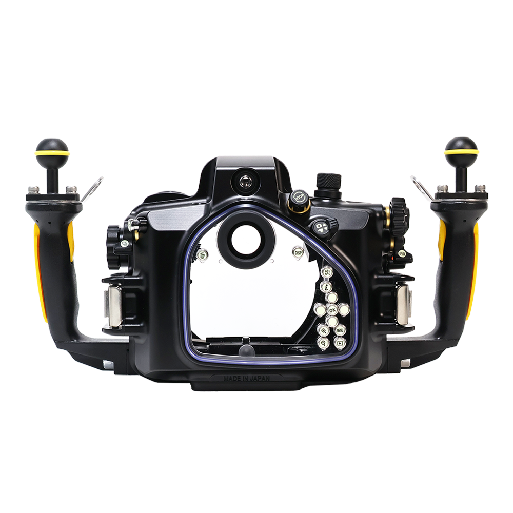 Carcasa submarina profesional para la cámara Nikon Z5II. Presenta un diseño universal compatible con futuros modelos mediante el reemplazo mínimo de componentes. El panel acrílico trasero es el doble de grande que en modelos anteriores, mejorando significativamente la visibilidad del monitor y reduciendo el peso bajo el agua. Incluye de serie una unidad de alarma de fugas (sensor de humedad y válvula de vacío) para garantizar la estanqueidad antes y durante la inmersión. Los controles principales y diales electrónicos están diseñados para ser operados sin soltar la empuñadura. Fabricada en aleación de aluminio resistente a la corrosión con acabado anodizado. Especificaciones técnicas: Dimensiones de 343 x 169 x 160 mm, peso aproximado de 2890g y profundidad máxima de 100 metros (330 pies). Compatible con diversos sistemas de conexión para flashes (Óptico TTL, Manual o Eléctrico).
