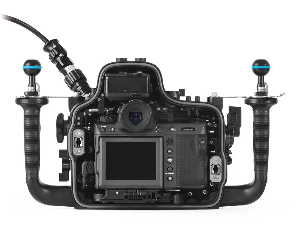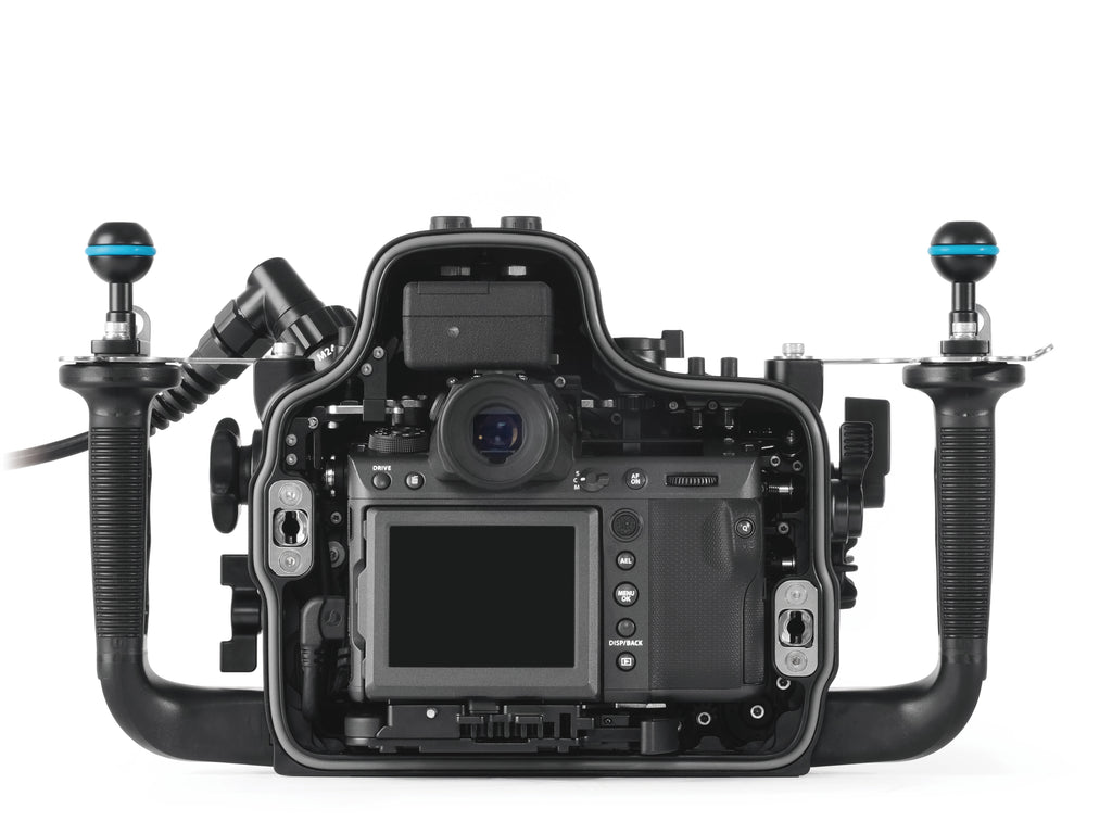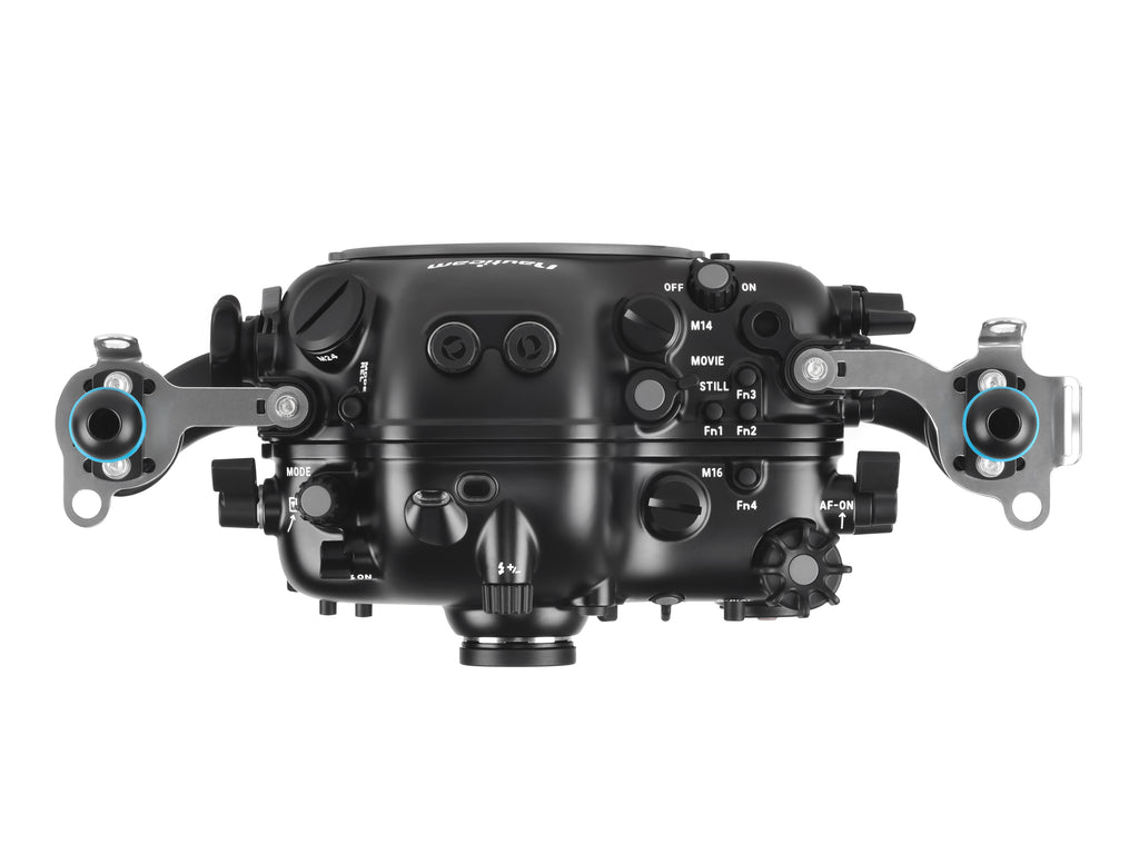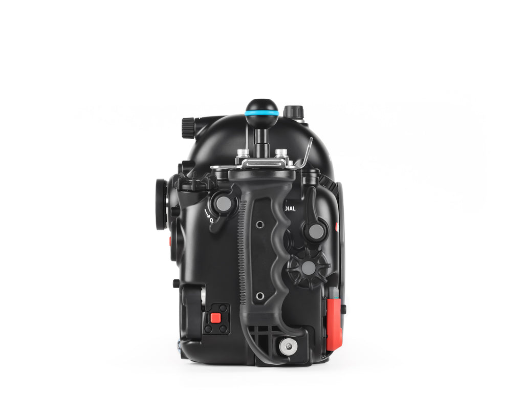 Siguiendo la filosofía ‘Mission Control’, Nauticam ha posicionado todos los diales y palancas de control de manera ergonómica, permitiendo que las funciones de exposición y enfoque estén al alcance de las empuñaduras, incluso con guantes gruesos. La estructura está fabricada en aluminio mecanizado de alta resistencia con un acabado anodizado duradero.