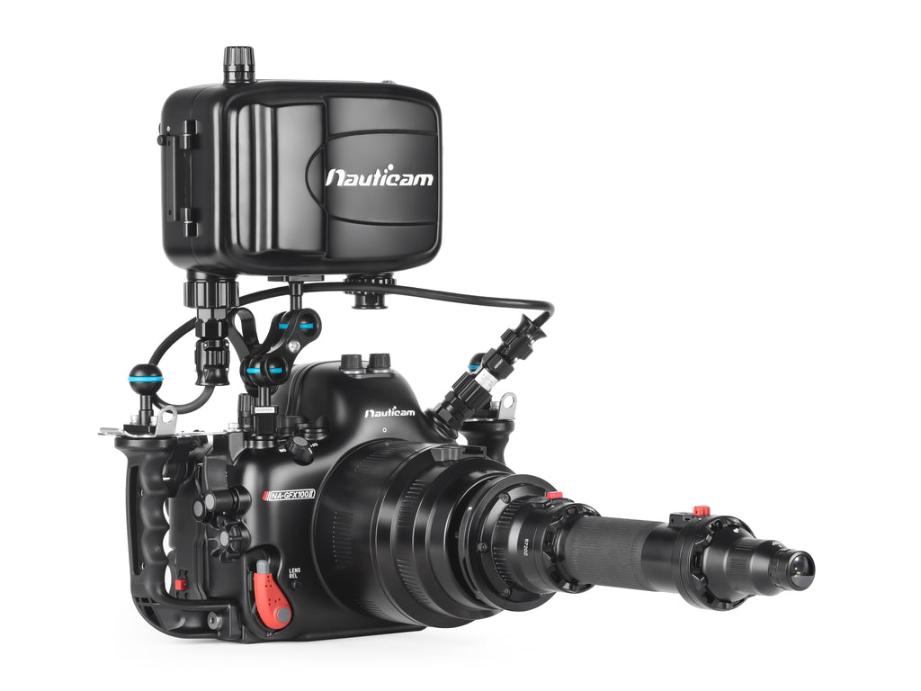 La carcasa submarina NA-GFX100II de Nauticam representa la cumbre de la ingeniería para la fotografía de formato medio bajo el agua. Diseñada específicamente para la Fujifilm GFX100II y su sensor de 102 megapíxeles, esta carcasa permite aprovechar el rango dinámico superior y las capacidades de video 4K/60p y 8K/30p en entornos subacuáticos exigentes.