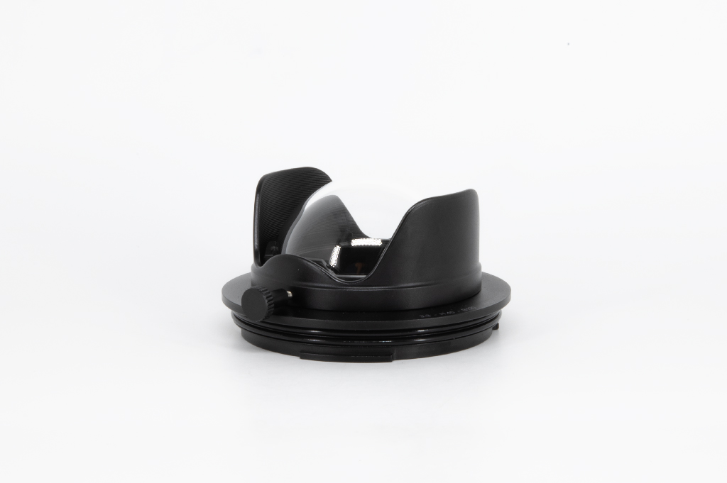 Puerto esférico (dome) de 3,3” H40 con cristal óptico y bayoneta B120. Fabricado con materiales de alta calidad para fotografía submarina, combinando cristal óptico superior y aluminio anticorodal anodizado robusto.