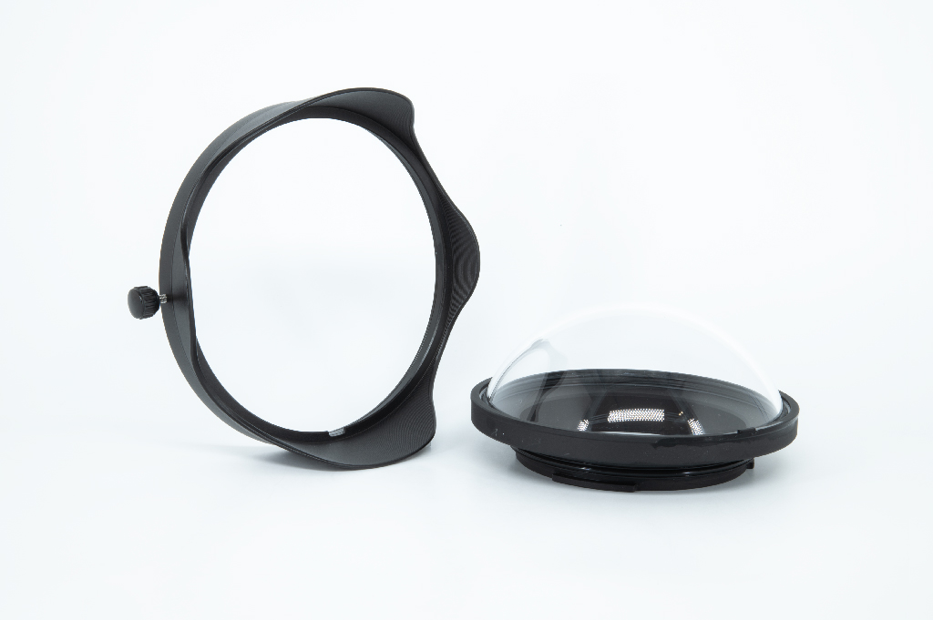 DATOS TÉCNICOS: Cúpula de 6″; Material del cuerpo: aluminio anticorodal anodizado negro; Material de la cúpula: policarbonato de alta calidad; Parasol extraíble; Doble sellado con junta tórica (O-Ring); Bayoneta B120; PROFUNDIDAD MÁXIMA DE TRABAJO: 100 metros. COMPATIBILIDAD: Compatible con carcasas con bayoneta B120. QUÉ INCLUYE: Puerto esférico (domo) de 6” de policarbonato B120; Parasol; Protección frontal de neopreno; Tapa trasera de PVC; 2 juntas tóricas de sellado; 2 años de garantía del fabricante. DESCRIPCIÓN: En la fotografía submarina, elegir el puerto esférico adecuado es esencial para obtener imágenes claras y espectaculares. La cúpula de policarbonato es ligera y altamente resistente a los impactos, perfecta para quienes necesitan durabilidad y practicidad. Aunque es menos resistente a los arañazos que el cristal, ofrece una excelente calidad óptica y facilidad de uso. El tamaño del domo afecta a la distorsión de la imagen: cuanto más pequeño es el domo, mayor es la distorsión, por lo que elegir el tamaño correcto es crucial para asegurar resultados óptimos.