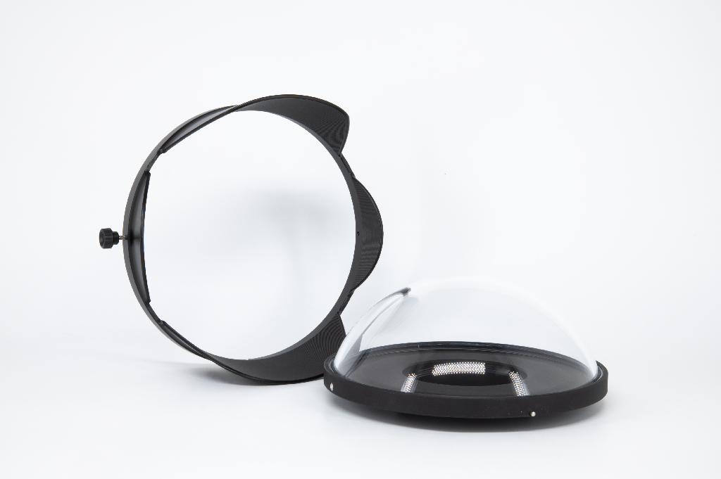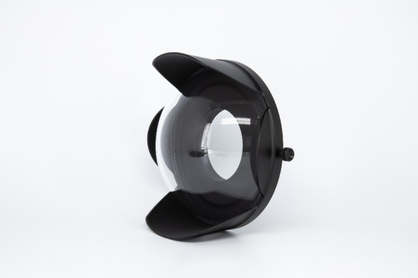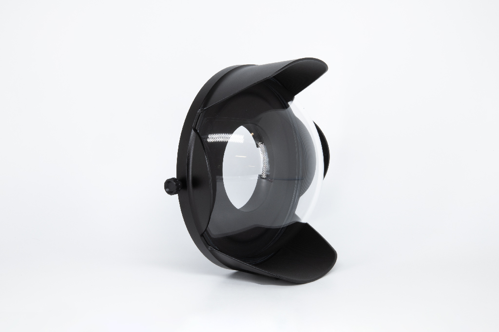 Puerto esférico (domo) de 8 pulgadas fabricado en policarbonato de alta calidad con cuerpo de aluminio anticorodal anodizado negro. DATOS TÉCNICOS: Cúpula de 8″; Material del cuerpo: aluminio anticorodal anodizado negro; Material de la cúpula: policarbonato de alta calidad; Parasol extraíble; Doble junta tórica de sellado; Bayoneta B102; Profundidad máxima de trabajo: 100 metros. COMPATIBILIDAD: Compatible con carcasas con bayoneta B102. QUÉ INCLUYE: Puerto esférico de 8” policarbonato B102, parasol, protección frontal de neopreno, tapa trasera de PVC, 2 juntas tóricas de sellado y 2 años de garantía del fabricante. El policarbonato es ligero y altamente resistente a los impactos, ideal para quienes buscan durabilidad y practicidad con una excelente calidad óptica.